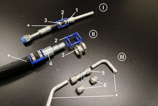 3 Edelstahl-Clips für das Verpressen und Fixieren des Schlauchs auf der Kupplung