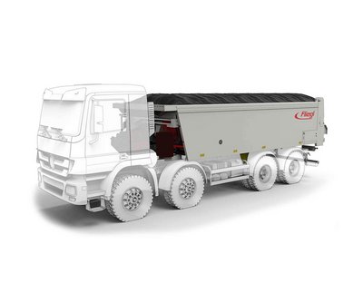 Simple et efficace : Fliegl construit ses bennes de forme conique, c'est-à-dire s'élargissant vers l'arrière. Ainsi, lors du basculement, il ne reste pratiquement aucun résidu de la marchandise transportée dans la benne et l'usure de la paroi de la benne est moindre lors du vidage.
