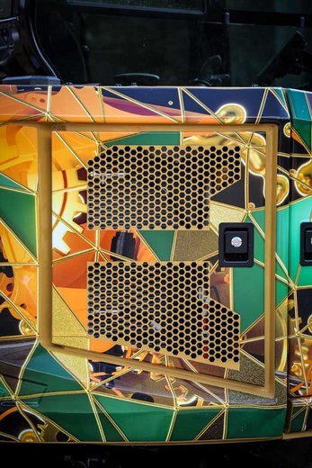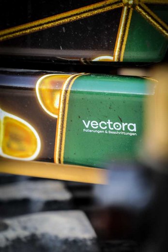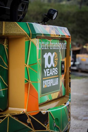 Cet habillage, réalisé avec notre partenaire Vectora GmbH, ne passe pas inaperçu. D’une part, grâce au logo officiel du jubilé de Caterpillar à l’arrière, et d’autre part, grâce à son design aux lignes marquantes.