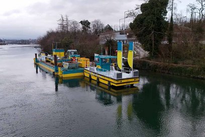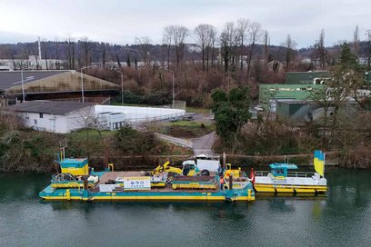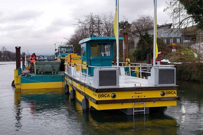 Après son intervention sur l’Inseli de Rheinfelden, l’«ORCA» se rendra sur son prochain chantier sur l’Aar près d’Aarwangen.