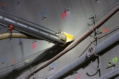 Pour ce projet du tunnel Stuttgart Feuerbach, une sécurisation particulière de la voûte dans certains tronçons partiels est, de surcroît, nécessaire. L’intégration de tubes de voûtes parapluies, également au moyen d’un jumbo de forage Sandvik, a été privilégiée comme variante de sécurisation. Lors de l’intégration des tubes de voûtes parapluies, une méthode, développée par Avesco et qui, entretemps, a fait toutes ses preuves dans divers projets tout autour du globe, a été appliquée.