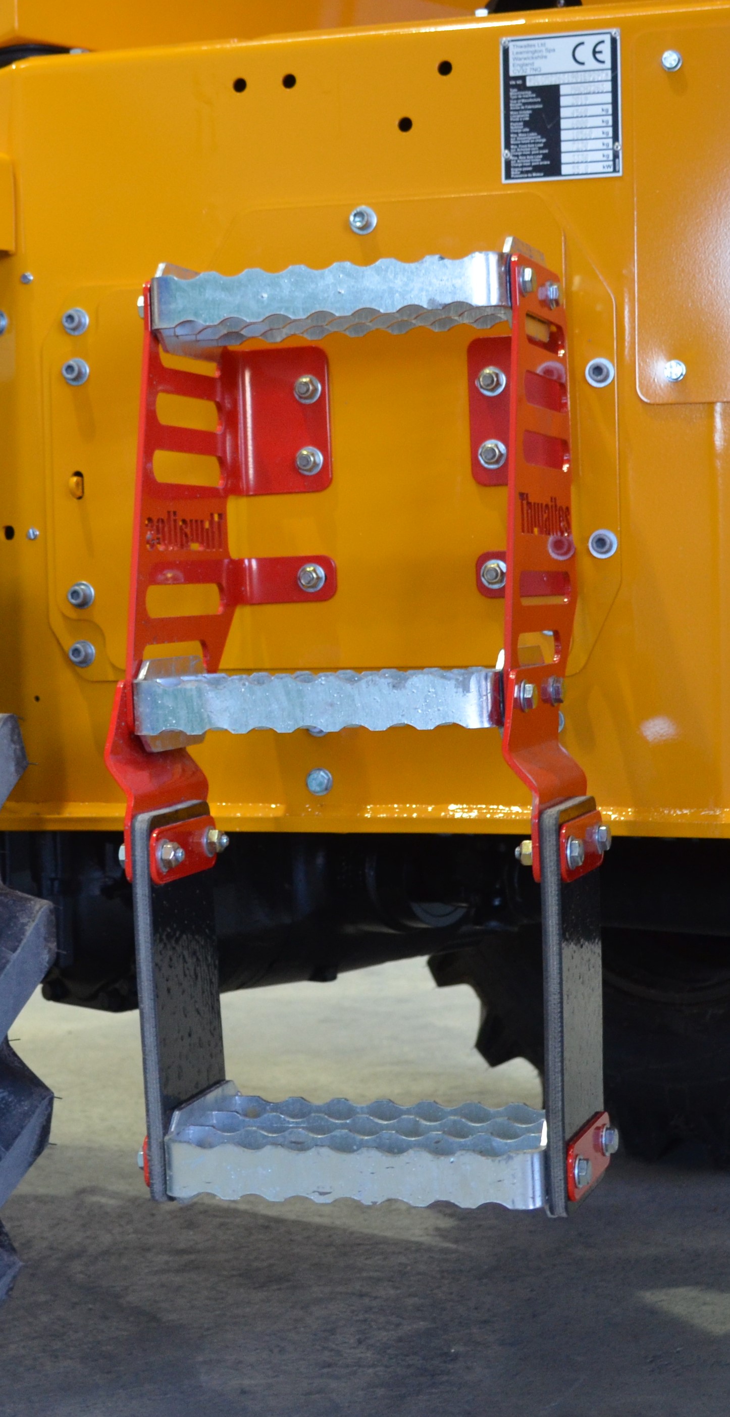 Les nouveaux tombereaux offrent de nombreuses petites améliorations que le machiniste ne manquera pas d’apprécier. Le grand écran couleur sept pouces, placé centralement au-dessous le volant (machines à partir de 3,5 tonnes) pour la caméra avant en est un exemple. L’accès des deux côtés par la montée dans le véhicule optimisée en est un autre.