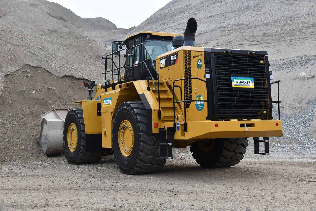 La nouvelle chargeuse sur pneu Cat 988K XE, qu’Eberhard utilise depuis le mois de février 2019 dans la gravière Weiach et qui a été livrée par Avesco, en est un exemple tout à fait d‘actualité. Il s’agit de la première chargeuse sur pneus de Caterpillar dotée d’un groupe motopropulseur hautement efficient. Les frais d’entretien et la consommation diesel sont de ce fait nettement minimisés. Il s’agit également du premier modèle qui a été vendu en Suisse.