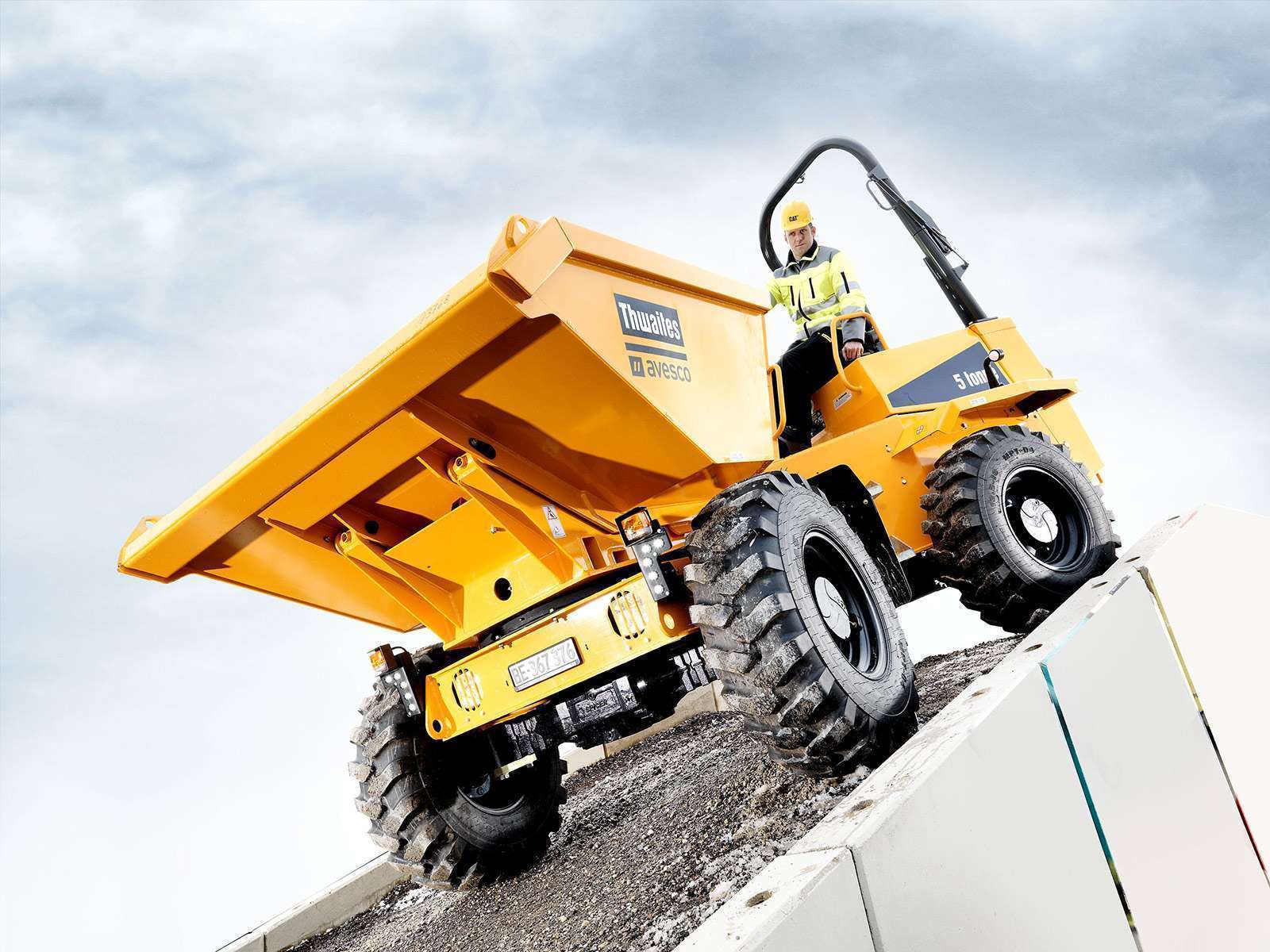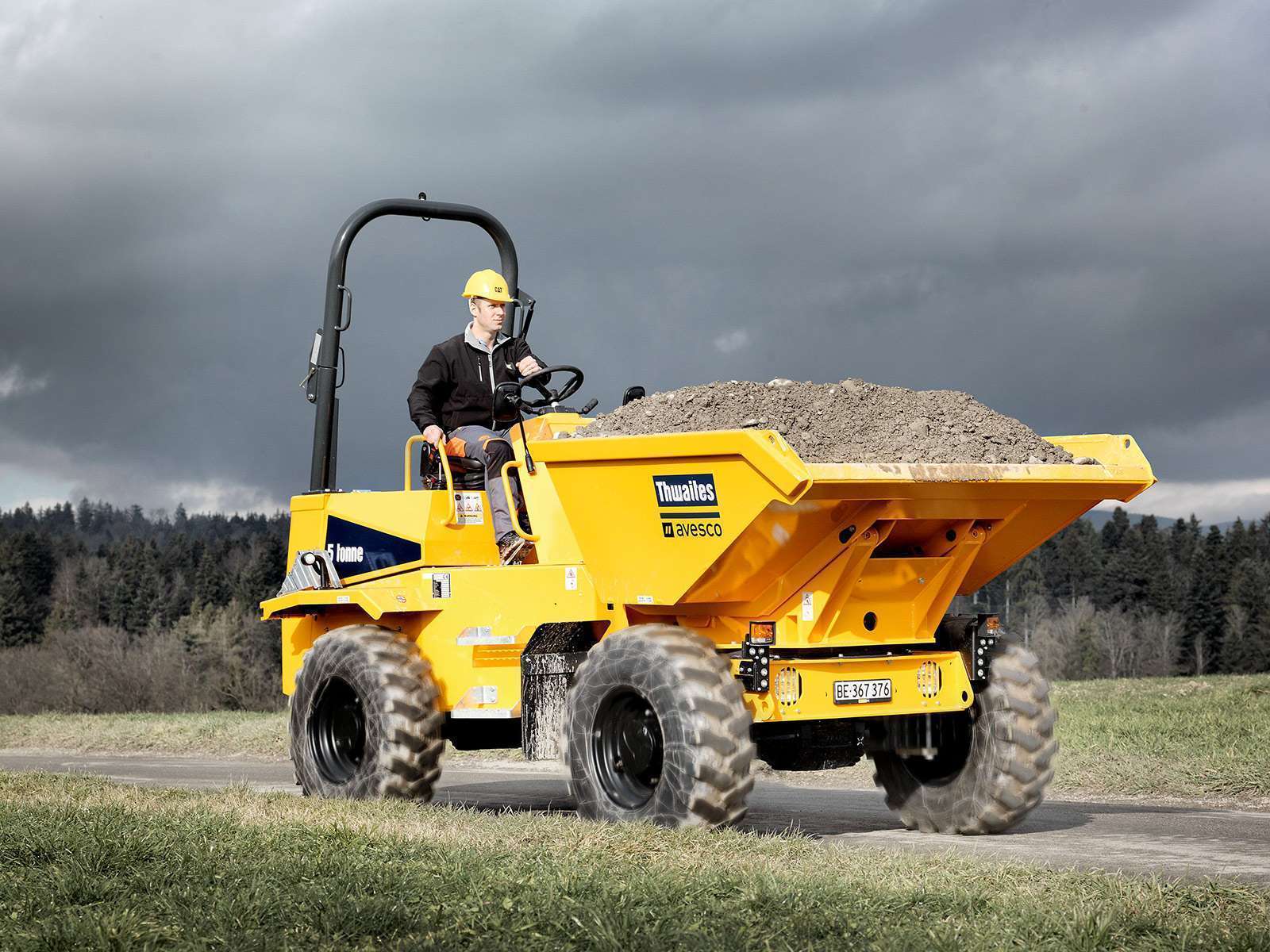 Les tombereaux Thwaites se distinguent en particulier par leur qualité durable. Le nouveau modèle 5 tonnes convainc par la conception claire et sobre de son poste de conduite qui, par ailleurs, est accessible des deux côtés. Grâce à son arrière court et le positionnement optimum du machiniste, le tombereau se conduit de manière extrêmement sûre et confortable. La machine est équipée de feux de route diurnes et d’un frein de stationnement à ressorts pneumatique.