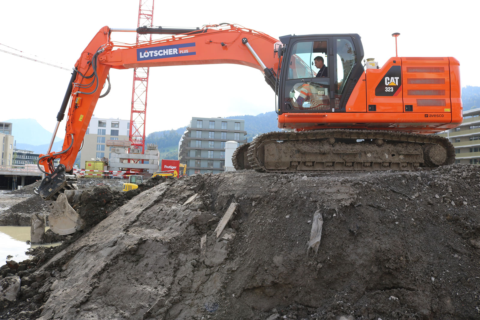 Du reste, la première intervention de la Cat 323 dure encore jusqu’à fin octobre: Ensuite, les travaux d’excavation devraient être achevés sur le terrain Schweighof.