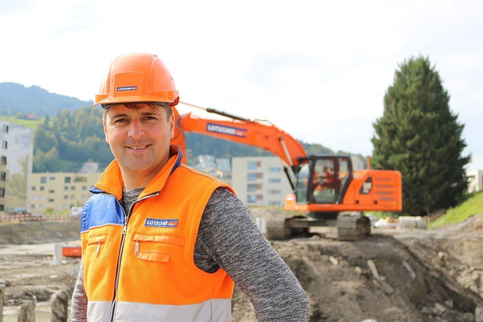 Puissance et rapidité sont exigées sur le chantier Schweighofpark à Kriens. En effet, un camion après l’autre est chargé de matériau excavé. «Ici, nous travaillons généralement à plein régime, car il faut que cela aille vite», dit Bruno Landolt et jette un regard sur la pelle hydraulique Cat 323.