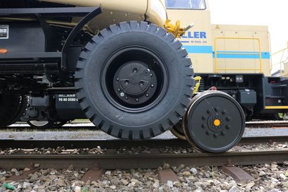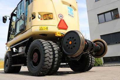 Il tipo di costruzione concepita per l’M323F conferisce maggiore sicurezza ed efficienza, sottolinea il co-CEO Florian Müller. «Maggiore sicurezza poiché, grazie al concetto senza profili, si evita che in caso di oscillazione involontaria vi sia uno spostamento della parte posteriore. La migliorata efficienza è data, tra le altre cose, dalle trasmissioni idrostatiche indipendenti degli assi a rotaia e degli pneumatici. In questo modo, in caso di applicazioni ferroviarie, gli pneumatici sono completamente sollevati, non vi è pericolo di abrasione e il rischio di danneggiare la tecnica ferroviaria si riduce al minimo».