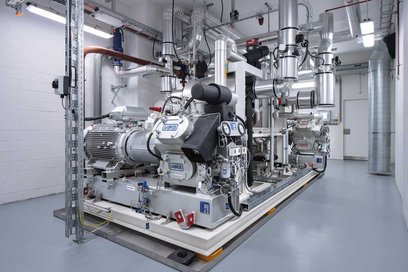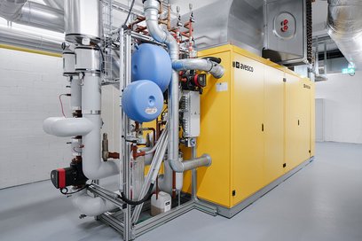 Per la propria sede di Dübendorf la Empa persegue una strategia ambiziosa: rispetto all’anno di riferimento, il 1990, le emissioni di CO2 dell’area devono diminuire del 70%. Per raggiungere l’obiettivo le caldaie a gas esistenti e che servivano da principale fonte energetica, sono state sostituite nella primavera del 2021 da una pompa di calore con refrigerante naturale, l’ammoniaca (NH3), e un gruppo di cogenerazione forza-calore (CFC). Le caldaie a gas servono ora solo per coprire eventuali picchi di carico e per garantire la ridondanza.