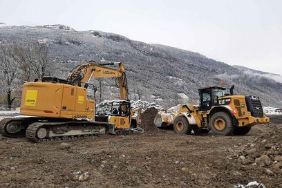 Su incarico della committente IBC Energie Wasser Chur, l’impresa edile grigionese Lazzarini AG sta lavorando dal 2024 allo scavo per le fondazioni della nuova sottostazione (stazione di trasformazione) Lacuna con una centrale energetica integrata per l’approvvigionamento termico.