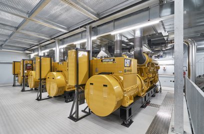 - 4 generatori diesel di tipo Cat 3516B, che producono 2250 kVA di energia, sistema di accensione ad aria compressa.