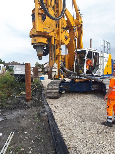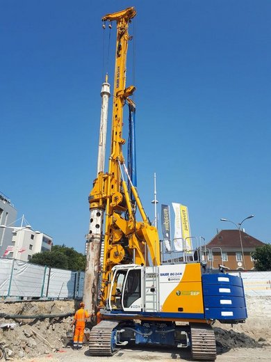 A Morges (VD), sul Lago Lemano, ecco sorgere un grande complesso con superfici commerciali, spazi abitativi e uffici. Lo stabile è costruito su un’area assai ristretta, proprio nel centro città. Per effettuare gli scavi di fondazione si è impiegata una BG 24 H: con procedura di perforazione intubata secondo il metodo Kelly si sono posati, a una distanza di due metri, due pali trivellati in calcestruzzo con diametro di 750 mm.