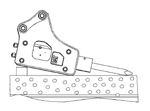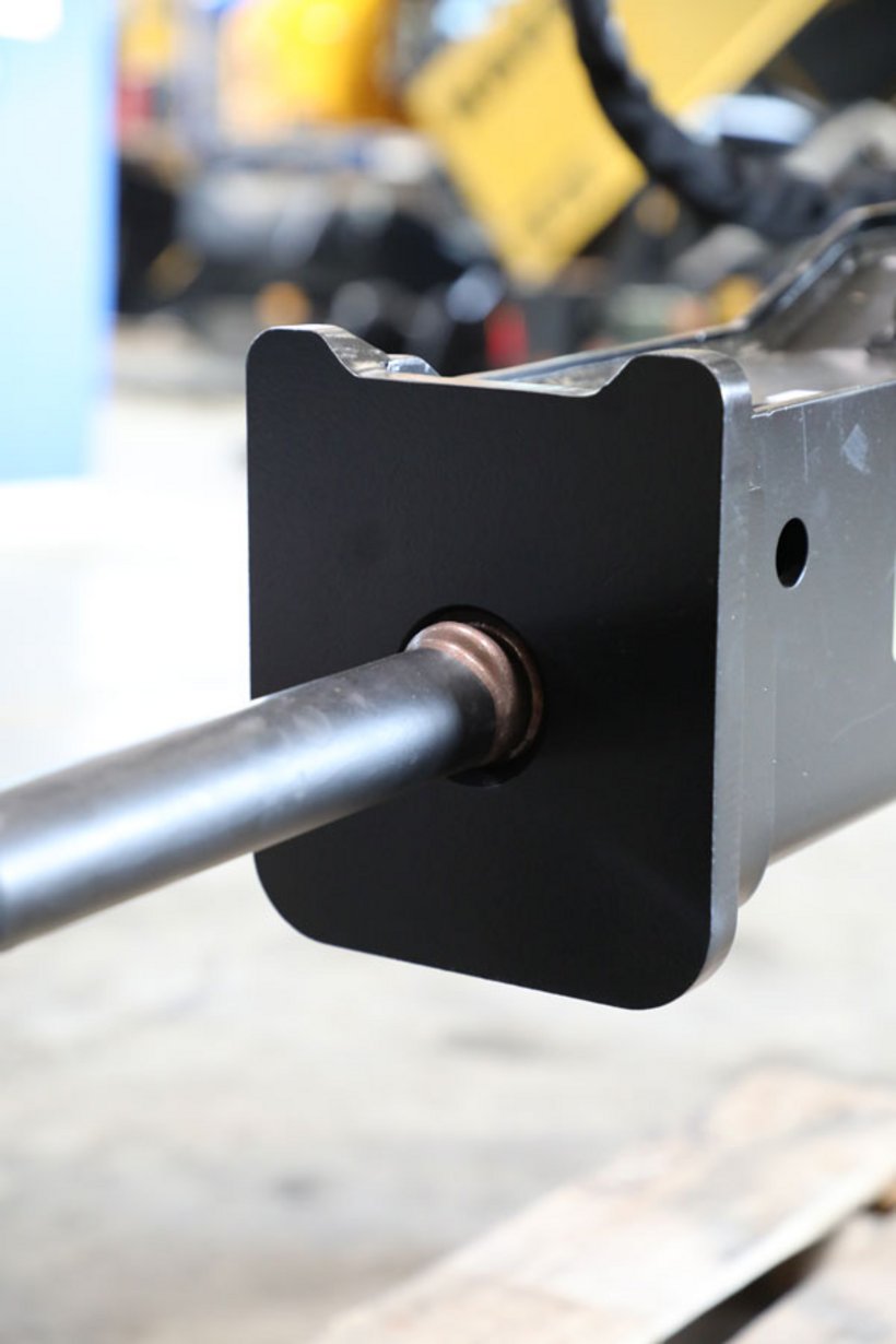 Martello idraulico con alloggiamento. Per verificare il gioco tra lo scalpello e la bussola dello scalpello, è necessario rimuovere l'alloggiamento.