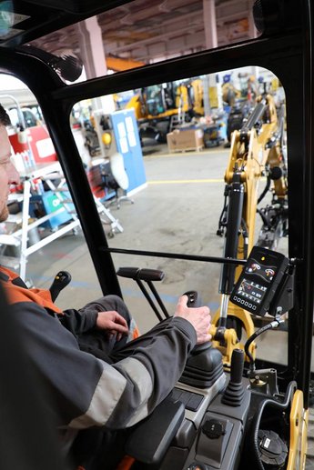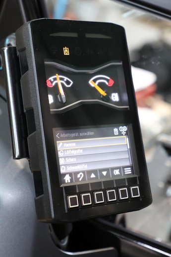 Selezione dell'utensile "martello" tramite l'unità di controllo della macchina del miniescavatore.