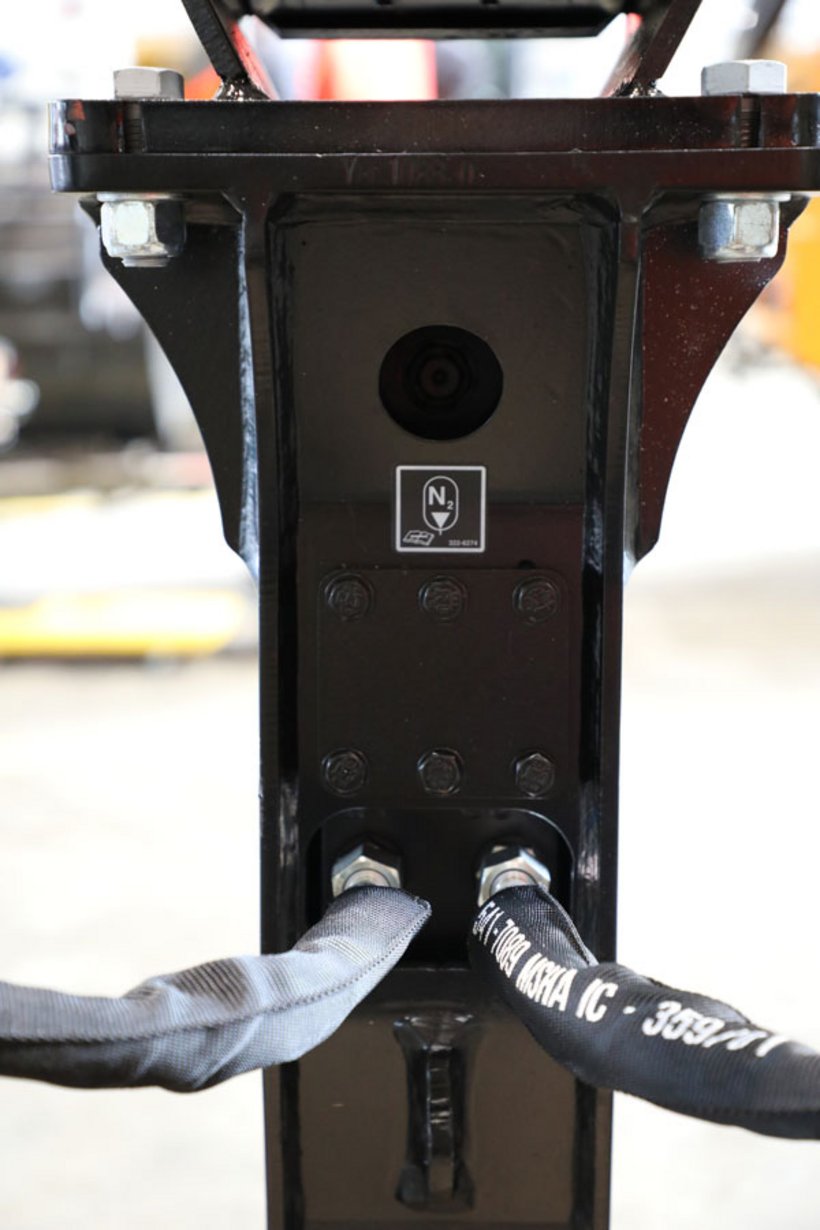 Quando si avvia il demolitore dopo un lungo periodo di fermo, controllare la pressione dell'azoto (immagine: demolitore idraulico con simbolo dell'azoto N2) e rabboccare se necessario (rilevante solo per i demolitori a gas).