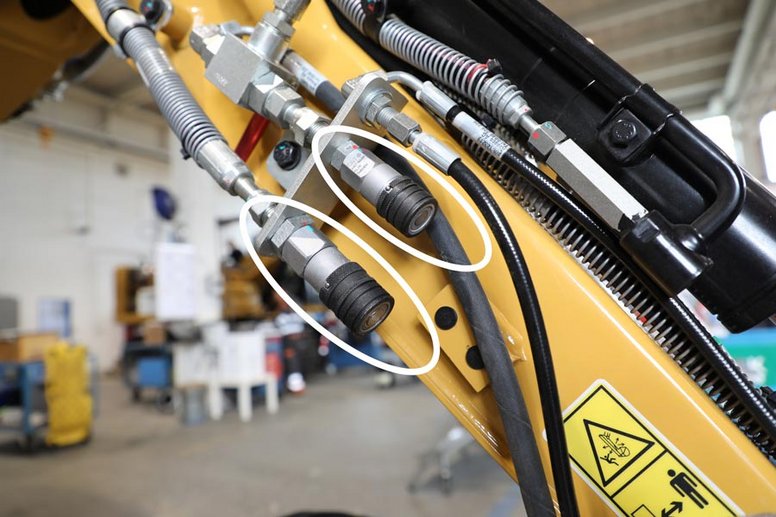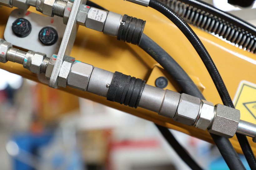 La nostra immagine mostra attacchi a innesto o a sgancio rapido (marcatura bianca) in cui le linee del martello sono già state rilasciate e rimosse. Le linee del martello si chiudono automaticamente quando il giunto viene rilasciato. La chiusura manuale non è necessaria.