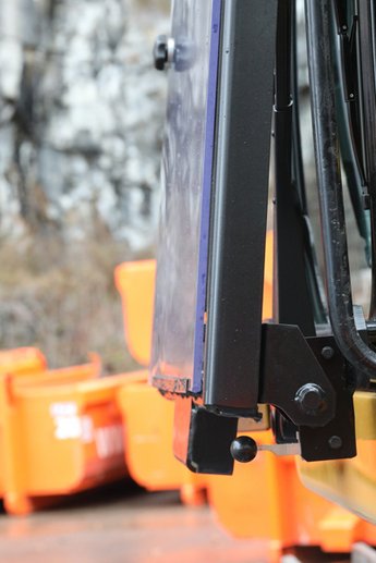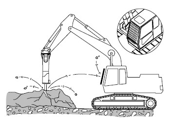 Se si prevede di eseguire frequentemente lavori di demolizione, si consiglia di utilizzare una griglia di protezione per evitare parti volanti e schegge di materiale. Per i materiali da demolizione più leggeri, un'alternativa alla griglia di protezione può essere uno schermo aggiuntivo in plastica rinforzata posto davanti al parabrezza. Entrambi i dispositivi di protezione possono essere montati e rimossi con poco sforzo al termine dei lavori di demolizione. Durante l'uso del demolitore idraulico, tenere chiusi il finestrino e la porta della cabina.