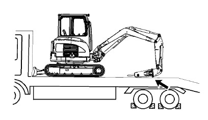 Se volete trasportare il vostro miniescavatore con un demolitore idraulico attaccato, assicuratevi che il demolitore sia in piano sulla superficie di carico del trasportatore.