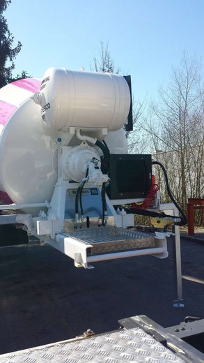 Durch ihre positiven Erfahrungen hat die Balz Kamm AG die im Auftrag stehenden beiden Sattelzugmaschinen mit demselben System ausgerüstet und kann nun auch seine Kippauflieger und den zusätzlich in Betrieb genommenen STETTER AM 10 FHAC LL Fahrmischer Auflieger mit dem „all in one“ Antrieb bedienen.