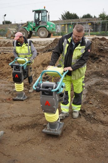 Die Stampfer haben eine Arbeitsbreite von 280 mm. Durch optional erhältliche Stampffüsse lässt sich eine Breite von 330 mm und eine Länge von 340 mm erzielen. Auch ein Reduzierfuss ist verfügbar.