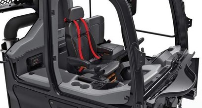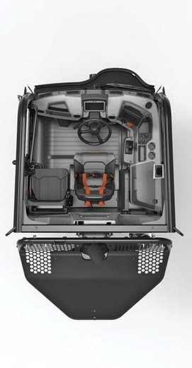 Auch in der Fahrerkabine hat sich viel getan. Der Überrollschutz mit spinaler Struktur erlaubt freie Sicht seitlich und schräg gegen hinten. Für angenehmes Arbeiten sorgt der Lärmschutz, durch den der maximale Schallpegel in der Kabine sinkt.