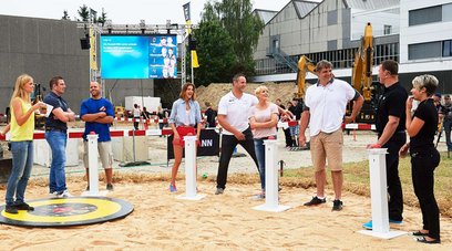 Eines der Highlights an der Techno Days-Hausmesse von Ammann und Avesco war das Promi-Duell «Sempach & Friends»: Acht bekannte Persönlichkeiten aus dem Sport- und Showbusiness traten bei drei Spielen in Zweierteams gegeneinander an. Das Team «Discoschwinger» mit Glanz & Gloria-Moderatorin und DJ Annina Frey sowie Spitzenschwinger Nöldi Forrer hatte am Schluss die Nase vorn und gewann für einen guten Zweck.